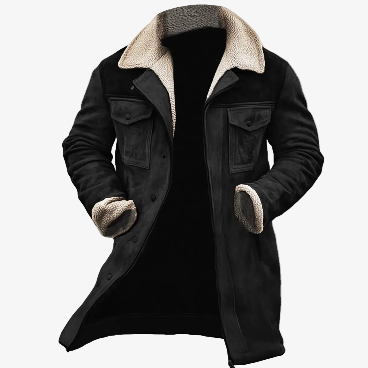 Det naturliga foder omsluter överkroppen med tät, konstant värme som följer med dig utomhus. Det skyddar dig från kall vind och långa promenader, vilket hjälper kroppen att hålla sig avslappnad istället för spänd. Varje steg blir mer kontrollerat när kylan inte kan tränga in.