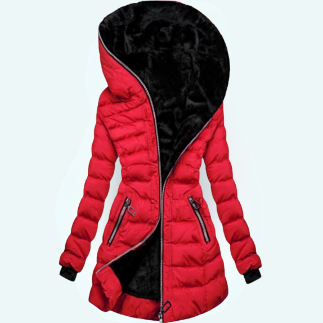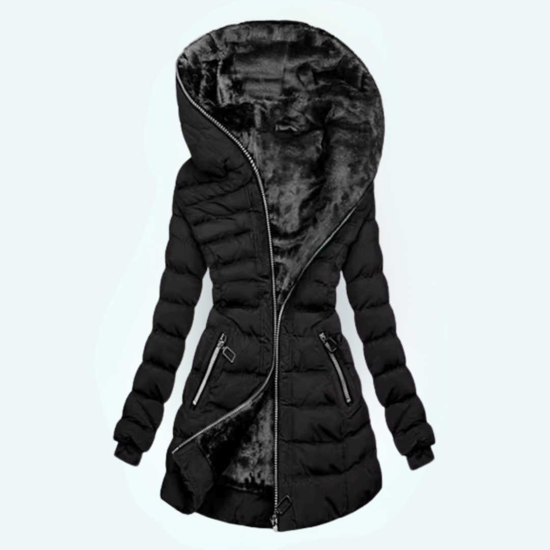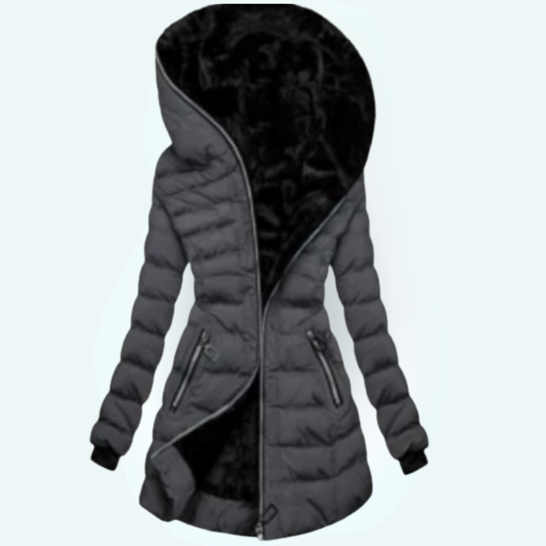 Aslög Lång quiltad kappa med huva kombinerar värme, elegans och funktion i ett tidlöst plagg. Med sin extra längd, mjuka insida och smickrande silhuett är den perfekt för kyliga morgnar och kallt väder utan att kompromissa med stilen.