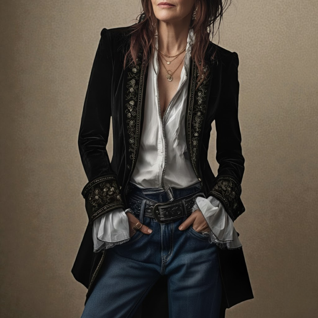 Carita™ Elegant Vintagejacka är mer än bara ett plagg; den förkroppsligar stil, komfort och självförtroende. Med sina lyxiga tyger och utsökta hantverk är den inte bara bekväm att bära, utan låter dig också glänsa i alla situationer. Unna dig känslan av att vara bekväm i din egen hud samtidigt som du ser elegant ut.