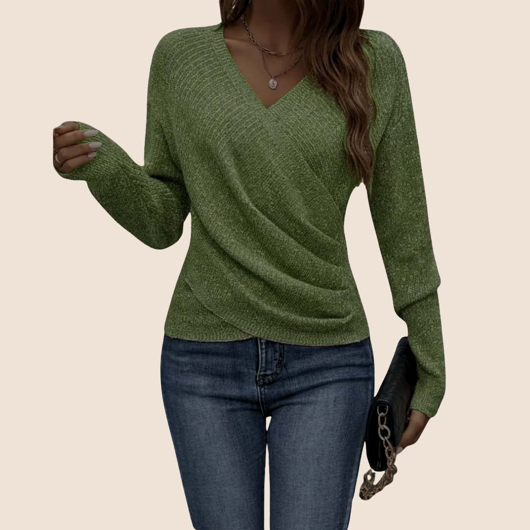 Anette™ - Lyxig Topp med V-ringning och Omlottdesign